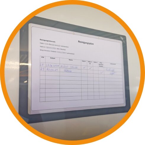 Dokumentenhalter von spLEAN schaffen Ordnung und Struktur, indem sie Unterlagen wie Betriebsanweisungen, Gefährdungsbeurteilungen oder Sicherheitschecklisten direkt am Einsatzort verfügbar machen. Statt lose Zettel oder schwer auffindbare Dokumente zu suchen, haben Beschäftigte die relevanten Informationen jederzeit griffbereit und übersichtlich vor Augen. Dies fördert nicht nur die Prozesssicherheit, sondern auch die konsequente Umsetzung von Arbeitsschutzmaßnahmen – ein wichtiger Beitrag zu Transparenz, Nachvollziehbarkeit und gelebter Sicherheitskultur.