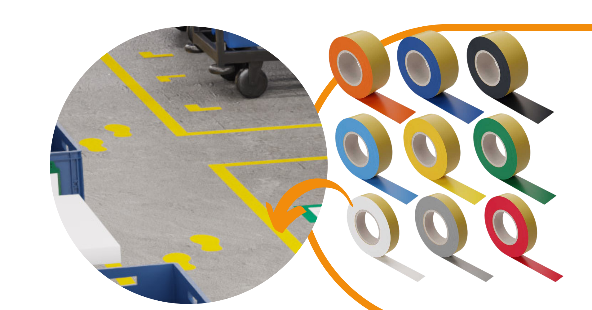 Nicht immer sind Wegeprobleme dauerhaft. Umbauten, saisonale Produktionsspitzen oder temporäre Auslagerungen führen oft zu veränderten Wegen und Prozessführungen. Für solche Fälle bietet spLEAN temporäre Markierungslösungen, die sich rückstandslos entfernen und bei Bedarf wiederverwenden lassen.